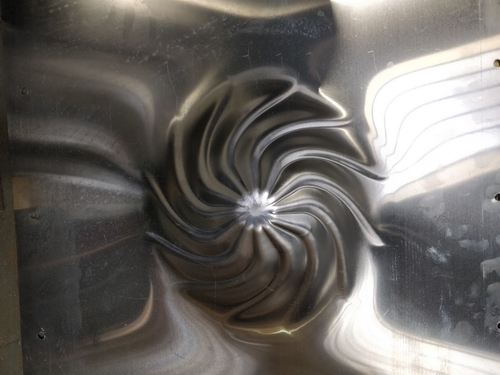 Therefore the manufacturing workflow is an imperative part of the design process. The Single Point Incremental Forming (SPIF) is a process that imparts 3D forms onto 2D sheets that are directly formed by accumulative plastic deformations. Here, the structural capability of the sheet of material is augmented by local surface structuring which opens up new potentials to structural forms that could be manufactured out of the thin sheet of material.