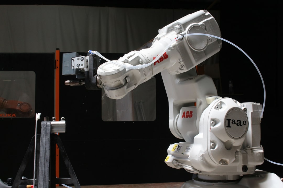 To fabricate the steel rebars an ABB robotic arm is used. Pneumatic system was set to grip the steel rebars with perfect control.In total more than 500 pieces was bend in 1 days which represents the power of digital fabrication tools compared to traditional fabrication techniques.